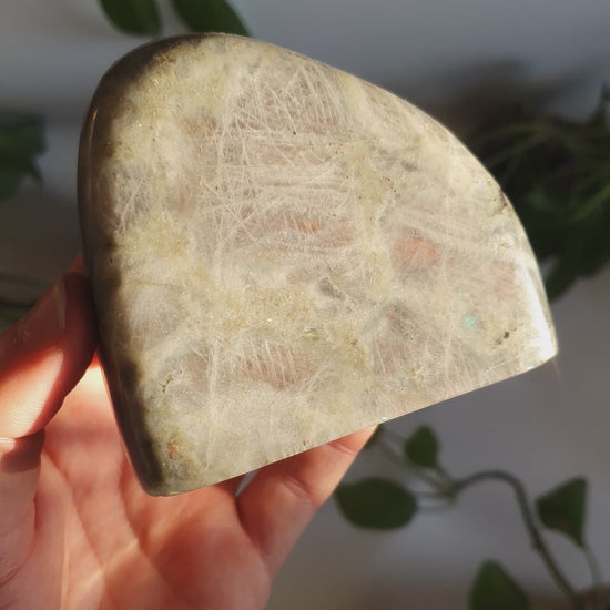 Diese Labradorit Freeforms aus Madagaskar zeigen einen besonders schönen gold-lila Schimmer, der je nach Lichteinfall auf der Oberfläche aufblitzt. Durch die Politur wirkt das Farbspiel intensiver und die natürliche Struktur kommt klar zur Geltung – jedes Stück hat seinen eigenen Flash und verändert sich beim Drehen im Licht.