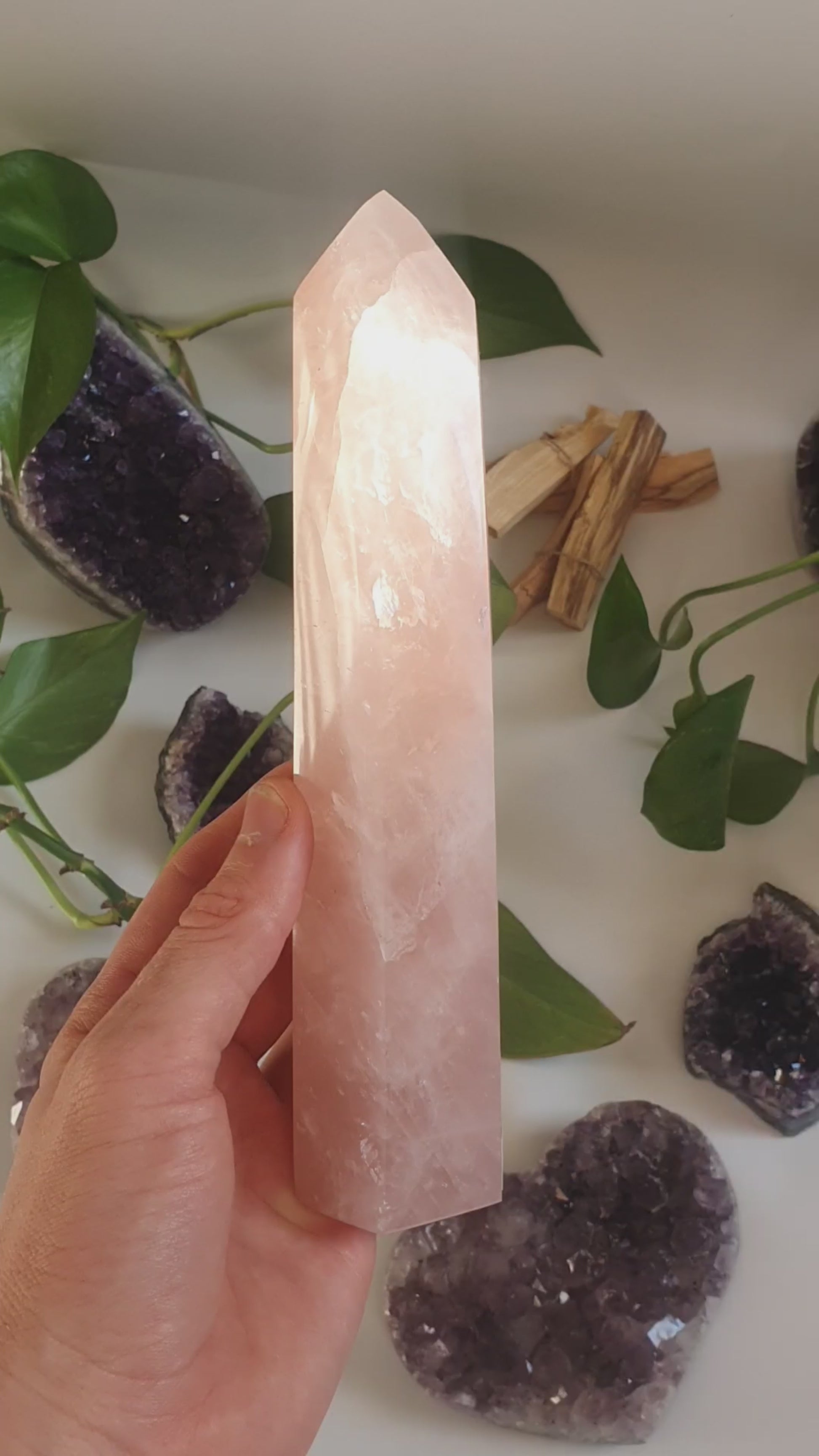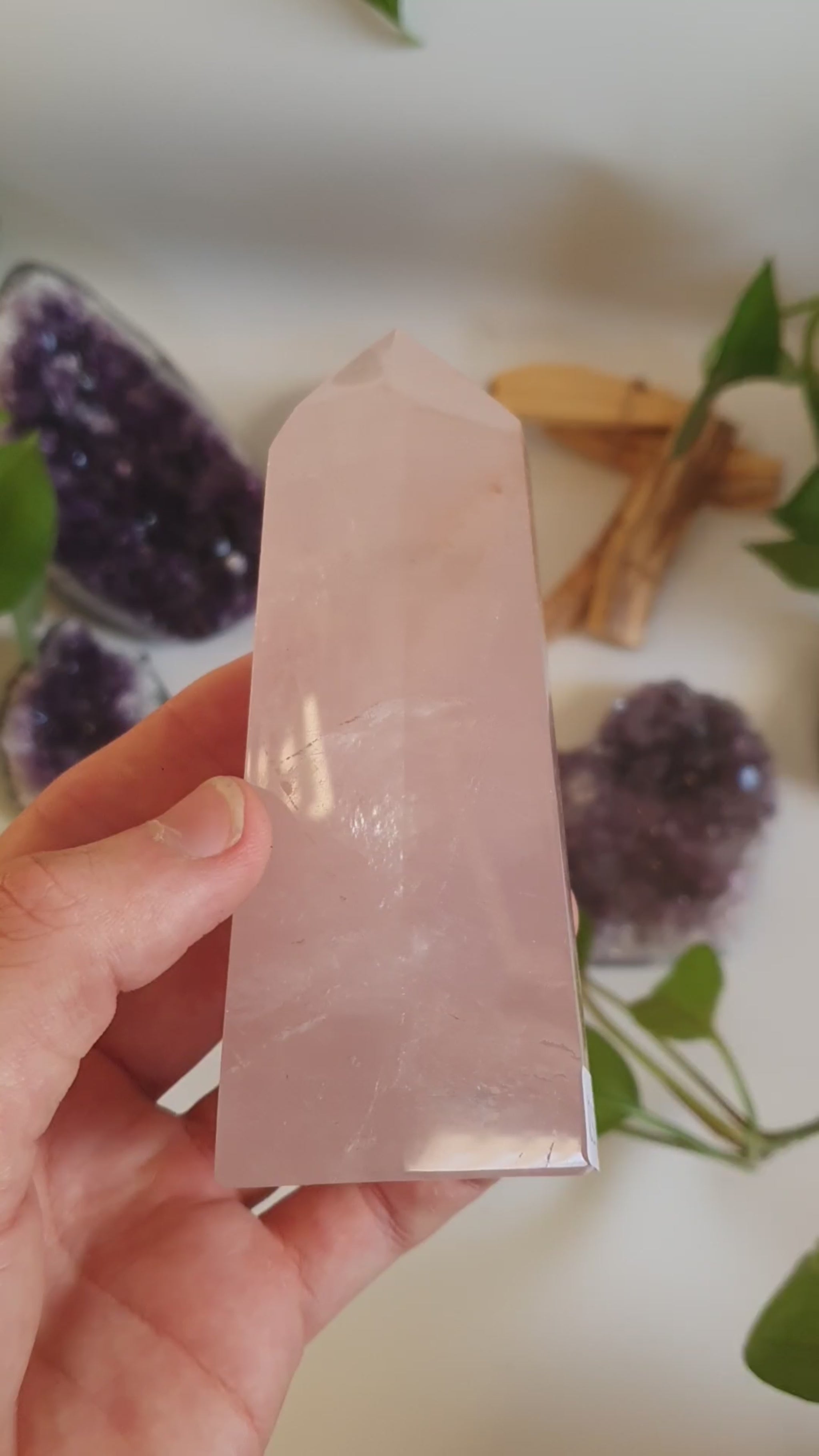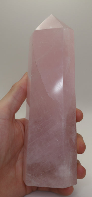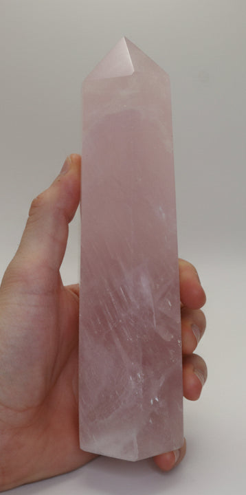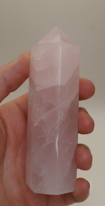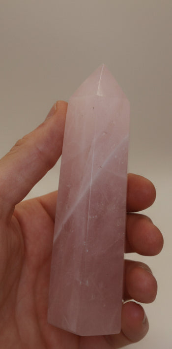 Diese Rosenquarz Türme aus Madagaskar zeigen zarte Rosatöne mit natürlichen Wolkungen und feinen Strukturen, die jedes Stück anders wirken lassen. Der Schliff bringt die Nuancen schön hervor und sorgt für eine glatte, hochwertige Oberfläche – mal eher milchig, mal etwas klarer, immer individuell.